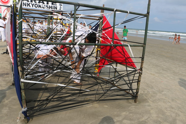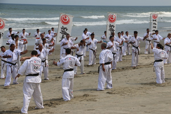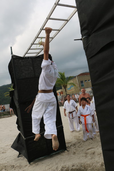 The tests were: kihon, idogeiko, kata, physical test with flexibility, abdominal, squats, tameshiwari test and tameshiwari with tobi yoko geri, and kumite.