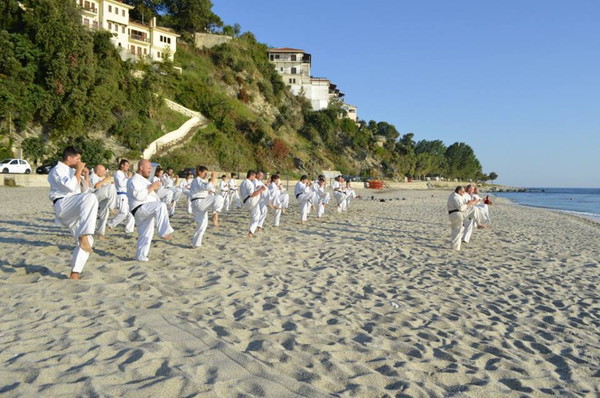 Official guest was the leading Spanish teacher and international referee Shihan Pedro Soriano, who along with the chief representative of Shinkyokushinkai Greece, Shihan George Kosmidis and Branch Chief of Northern Greece Otario Melikiadis, taught Kihon, Kata, Kumite and presented in the best way the uniqueness and authenticity of the hardest Karate style. Official guest and master of Taekwondo Basilis Alexandris, a close friend and best man’s representative, honorary member of Greek Shinkyokushinkai, presented his kicking techniques, giving a unique image in the seminar. The stay was made at the hotels Karaoulanis Beach, Zefiros Beach, where athletes and trainers enjoyed the beautiful beach of Agios Ioannis and Papa Nero, with excellent service. The sessions were held daily in the morning at the unique Papa Nero Beach by the sea, and in the afternoon at a designated area, under the trees near the Camp. On the last day, Kyu and Dan promotions exams were held by three teachers, and with the presence of Shihan Kostas Gallios, the new member of the Greek Shinkyokushinkai family.