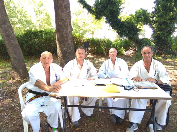 In the last day of the summer seminar, there was a Grading Examination for kyus and for shodan, nidan, sandan grades with examiners Shihan Kosmidis, Escalera, Andrews, and Melikiadis taking position in the examination chair for about 3.5 hours. Needless to say that one of the athletes who was examined for grading in nidan was the European Champion Sempai Andrei Zinchenko who was examined in the strict terms that applied in Japan examinations with Sempai Zhana Andro. Also European Champion Sempai Mikheil Tsiklauri was examined for sandan. After the strict exams, all the karate practitioners gathered for the final Kumite. Practitioners who were examined for nidan and sandan had 20 and 30 strong Kumite fights each. There were no exceptions.