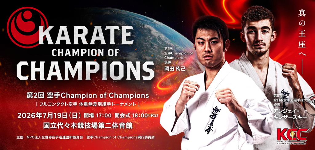 The participants for “The 2nd Karate Champion of Champions (KCC),” to be held at the Yoyogi National Stadium 2nd Gymnasium on Sunday, July 19th, have been decided.