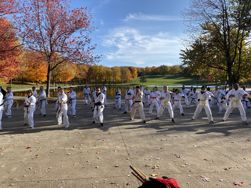 On Sunday, October 16th, 2022, at the Mount-Royal park in Montreal, Quebec, the 3rd annual Outdoor Shinkyokushinkai Seminar took place. More than 70 people participated in this seminar. It was a magnificent warm sunny day with all of the fall colors and their beautiful reflections from the lake in front of participants.
