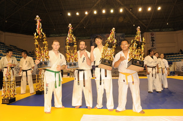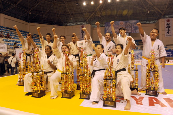This period, Indonesia did not have strong fighters compared with those from abroad. Fortunately, Mr. Kenichiro Kumata from Jakarta Dojo won the first place for category Male -75 kg and Mr. Gusffi Eranu won the third place for category +75 kg after blocking the giant from Singapore, Mr. Ronald Bernard, who was 195 cm tall and weighed 126 kg.