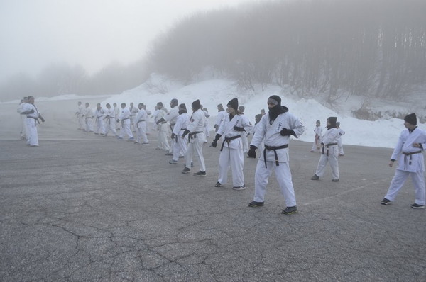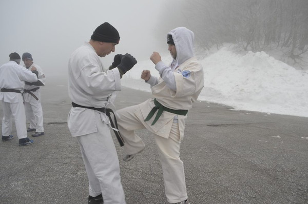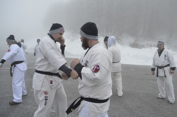The participants had the honor of experiencing high level training and toughening their skills in the cold and snowy mountain in cold temperatures that exceeded -5 Celsius. Under the guidance of Shihan Kosmidis, all karate athletes started training in the morning at 6:30 and finished 21:30 in the night. The fighting spirit was very high from all participants and all were motivated by Shihans to reach their limits according to Shinkyokushin path.