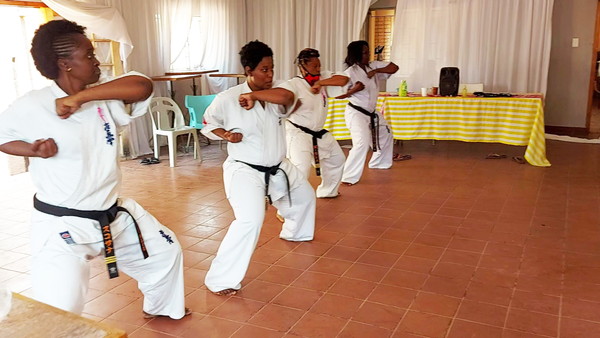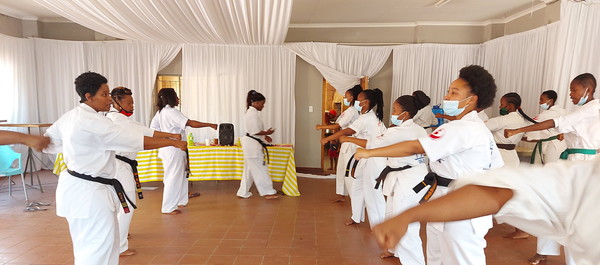 The purpose of the training was for the senior female sensei to spent time with the junior female karateka and share their karate experience and knowledge in order to encourage and motivate them on their karate journey as females in this male dominated sport and also to provide career guidance and awareness on other important issues that women encounter in their real life outside of karate. Beside the karate training sessions on the inner core and karate dynamics, the camp focused on sharing information on cancers (particularly on breast cancer awareness since October is designated as national breast cancer awareness month in South Africa), teenage pregnancy, gender based violence (GBV) (violence against women and children) awareness and career path guidance and other topics to inspire the juniors to make wise and better choices in life, and become good examples in the communities/society in the manner in which they behaved, spoke and simply taking the bull by its horns.