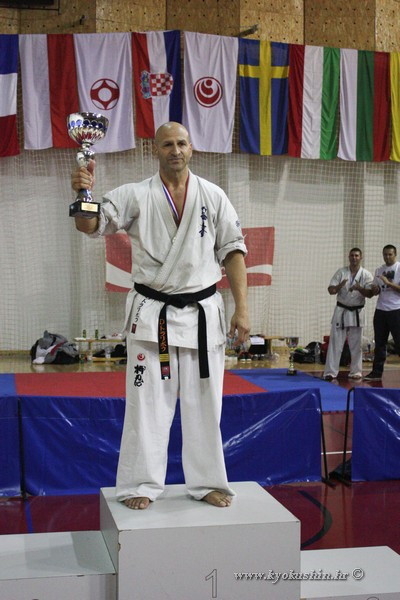 Special highlight goes to Bulgarian competetor Dimitar Trampov, who won first place in heavy category (+90kg), and was also awarded for best sport spirit. Sensei Trampov is 48 years old and with persistence and excellent fights won opponents twice as younger. Award for best fight tehnique won hungarian representative Csaba Gal.