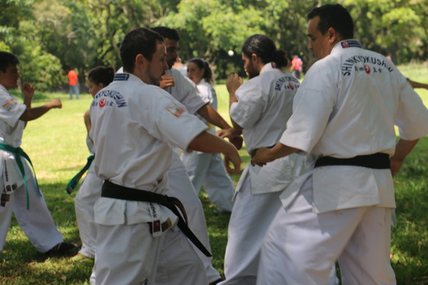 Shihan Denivaldo Carvalho gathered 80 students and teachers approximately and passed on the knowledge of Kata, Idogeiko and fighting technique. Training done in nature, asking everyone to start the New Year, with good spirit, and that positive thinking, be a motivation for the year 2018, to grow even more the Shinkyokushin organization in Brazil.