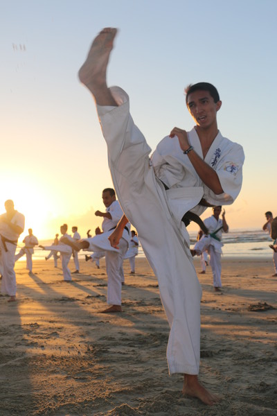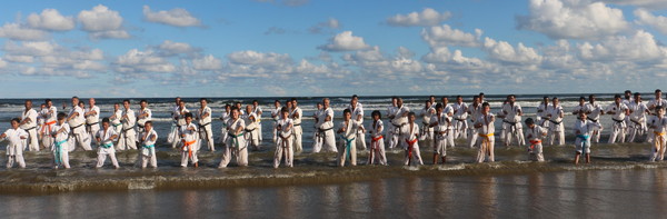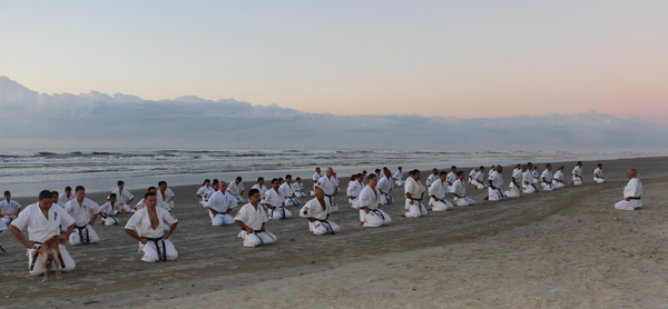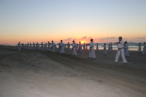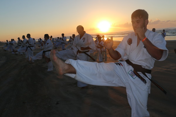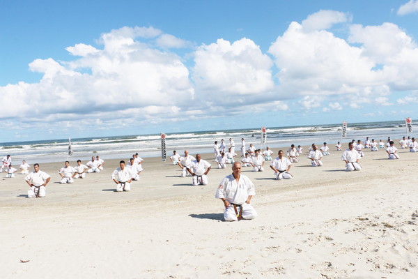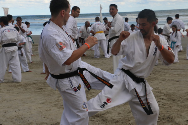 The training was conducted on the beach, with Kihon, Kata, fighting techniques and so on.