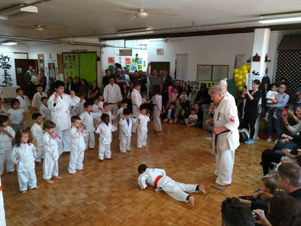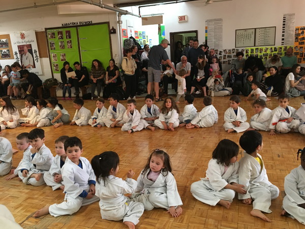 On Monday, May 27th, at the International Shinkyokushin Karate school of Shihan André Gilbert, downtown Montreal, the grading exam was held for 45 students aged 2, 3, and 4 years old.