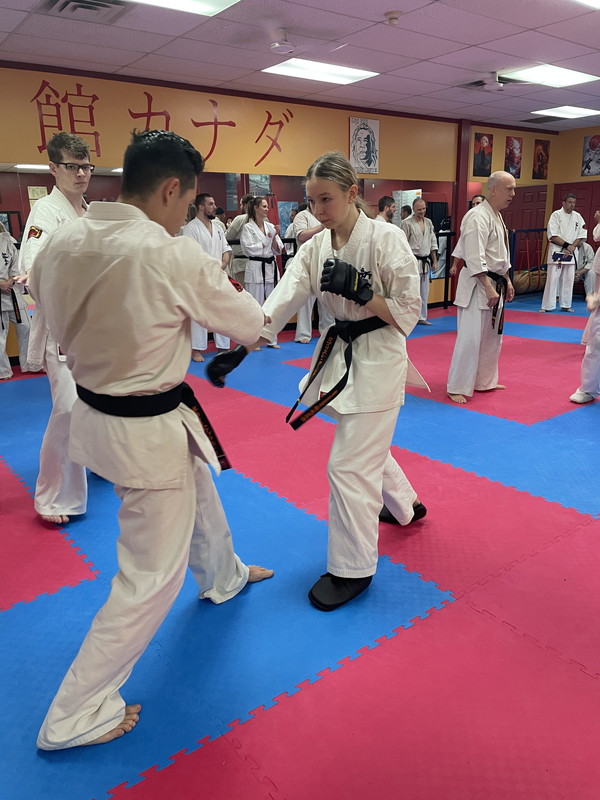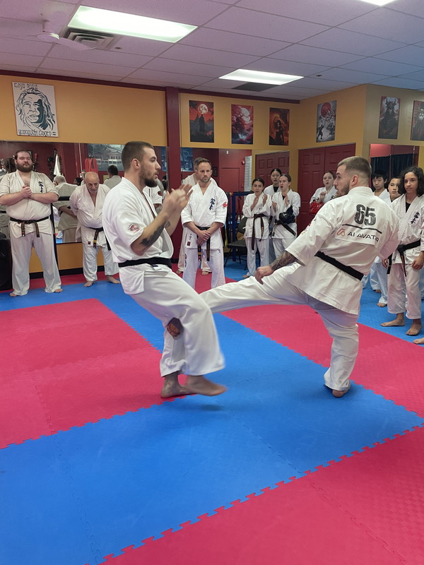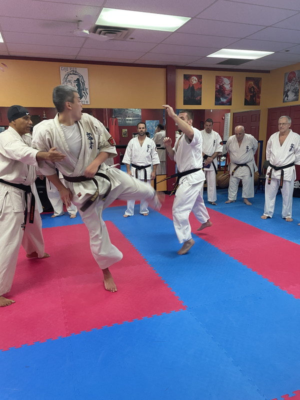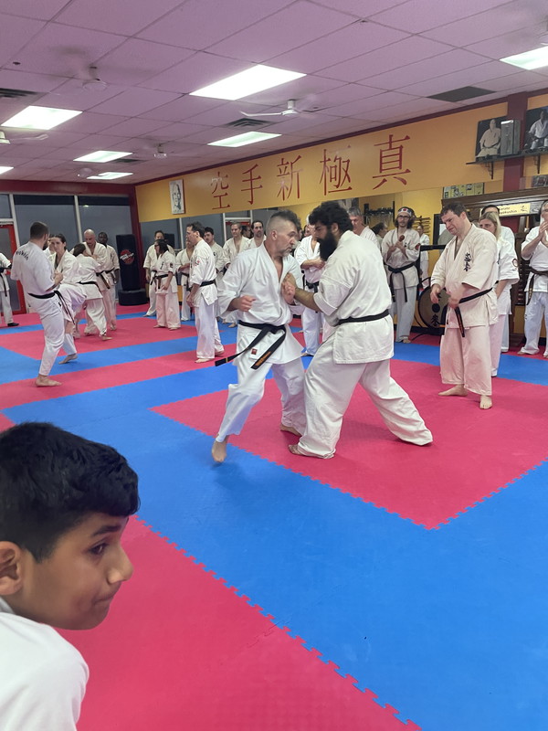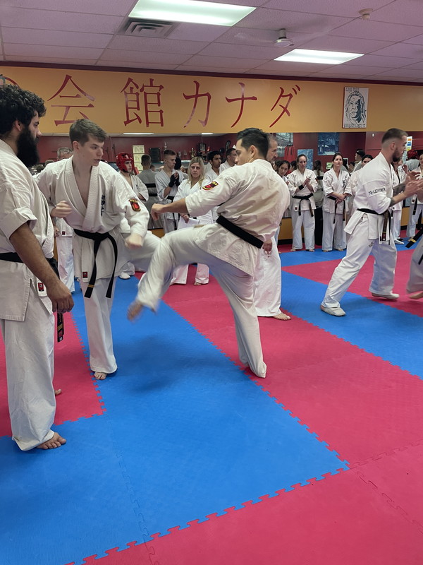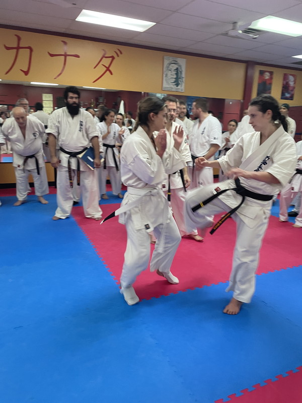 The belt examination continued, Saturday December 6th, with a rigorous and demanding training, cardiovascular training, push-ups blocks, various sequences of kicks, the Gohon Geri and upper body attacks, which was then followed with the Ido, Shugi, Ido combinations, Ido Sokugi and the San-bon-kumite.