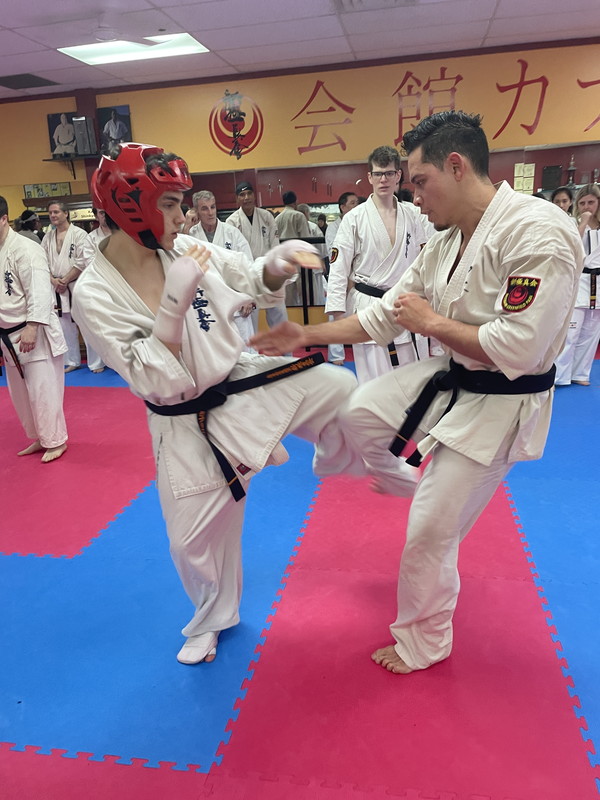Finally, the most demanding part of the grading started, the combat portion. The combats are always a huge challenge; however, the students did their best to succeed. More than 84 brown and black belts karatekas came to cheer and fight with the 7 karatekas who were present for their grading. Also, parents and friends attended the event to encourage the candidates.