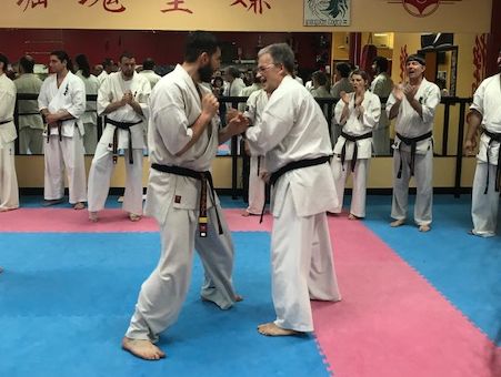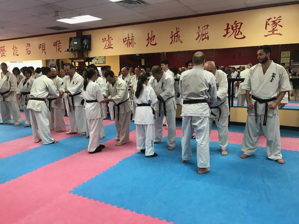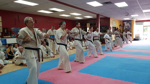 On Friday May 31st, thirteen candidates presented themselves at the Greenfield Park Dojo for their grading exam: there were two candidates for the 3rd Dan, two candidates for 2nd Dan and nine candidates for the 1st Dan. The evening started with the written exams, which was followed by katas and self-defence technics. On Saturday June 1st, the candidates started the day with a three-hour training, followed by the breaking with the hands and feet and finally with the combat portion of the Dan exam, which ended very late in the evening. The 3rd Dan candidates successfully completed their 30 combats, the 2nd Dan candidates also successfully completed their 20 combats and 1st Dan candidates were also successful and completed their 15 combats. During the two days, these thirteen karatekas demonstrated a “Budo Spirit”, by persevering, demonstrating their determination and showing a great deal of courage. More than hundred karatekas participated and encouraged the candidates; without this support their grading would have been meaningless. The candidates have successfully met all the requirements and we hope that these new Shodan, Nidan and Sandan will continue to be an example for the young and older karatekas. Shihan Alain Bordeleau and Shihan Normand Bordeleau are extremely proud of what they have achieved! Osu.