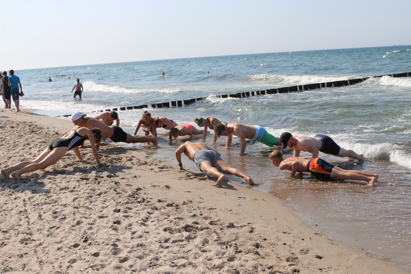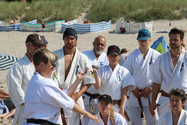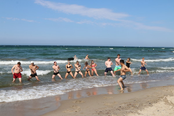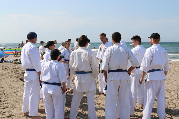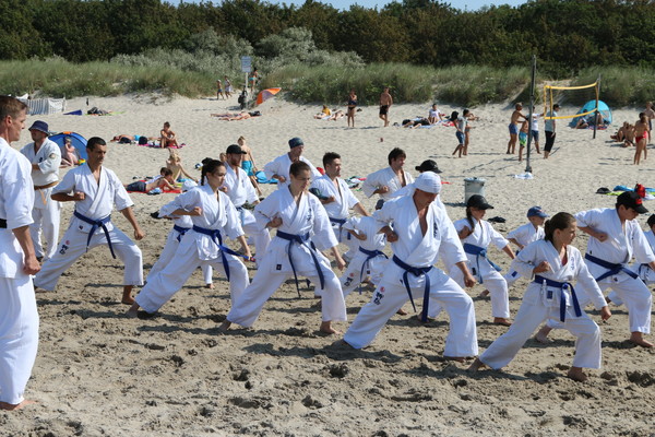 Highlights of the Summer Camp were the annual grading with 24 examinees, the night training at the beach including a final session in the Baltic Sea with all 110 karatekas practising kicks and punches together while standing in the pretty cold water of the Baltic Sea – and not to forget the Sayonara Party with barbecue, singing and dancing at the last evening.