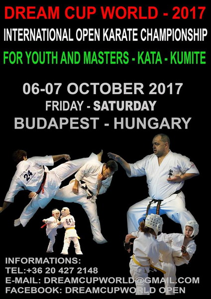 The Hungarian Dream Cup 2017 International Championship was held in Budapest on October 6-7. A total of 430 competitors from 15 countries (Belarus, Belgium, Bulgaria, Croatia, Germany, Hungary, Kazakhstan, Moldova, Netherlands, Russia, Slovakia, Spain, Sweden, Switzerland, Ukraine) participated in 45 Kumite and 11 Kata categories. The Hungarian competitors obtained more than half of the medals, but Bulgaria, Kazakhstan, Russia, Spain, Sweden, and Ukraine also performed well. The event was attended and supported by WKO Vice President/EKO President Koen Scharrenberg, Branch Chief Furko Kalman, Branch Chief Michael Soderkvist (Tournament Head Judge), the Ministry of Defence, and other important figures and sectors, with a great atmosphere throughout the tournament and sayonara party.