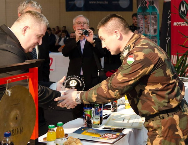 With nearly 100 participations from Hungarian full contact organizations, the Hungarian Championship had high quality and spectacular fights. During the opening ceremony, Dr. Janos Meszaros, President of the Karate Federation and Vice President of the Hungarian Olympic Committee together with Arpad Kalmar, Secretary General of the Karate Federation and organizer of the competition gave special awards to the guests of the championship, also to the patrons and prominent guests, to Shihan Attila Mészáros, WKO Vice President and to Shihan Kálmán Furkó, HFKO President.