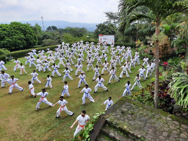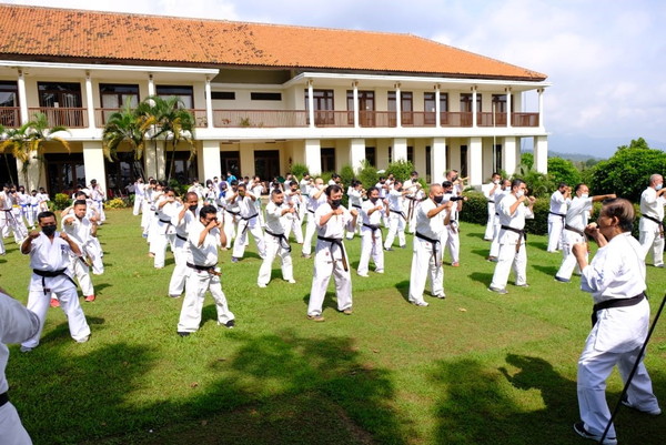 After the breakfast, all members trained Kihon and Ido together, then continued the training until 13:00, dividing into three groups. The participants, who would like to take higher Dan, repeatedly practiced new Kata for the next exam. Everyone enjoyed a group photo, and after lunch, the participants continued with the free program; swimming, taking walks in the city of Salatiga, enjoying the beautiful view from the hotel.
