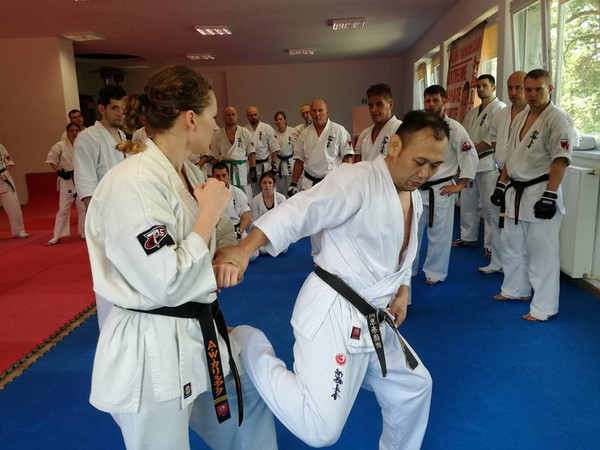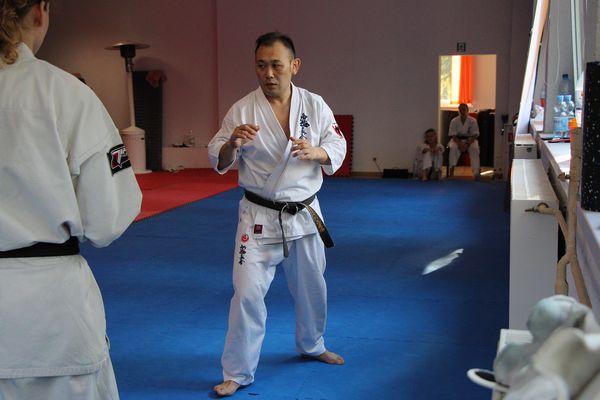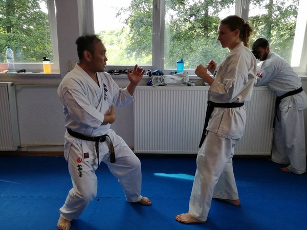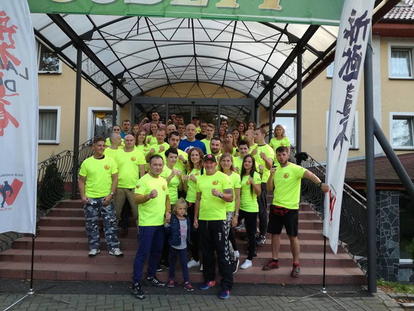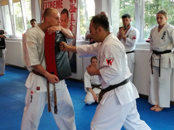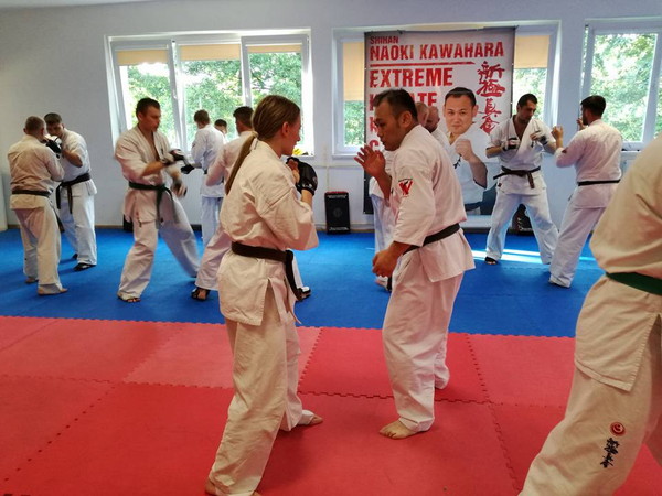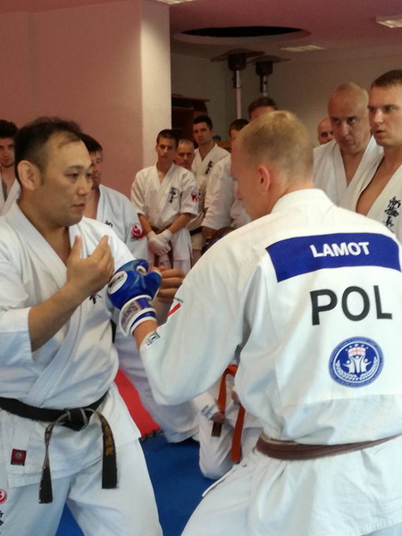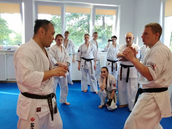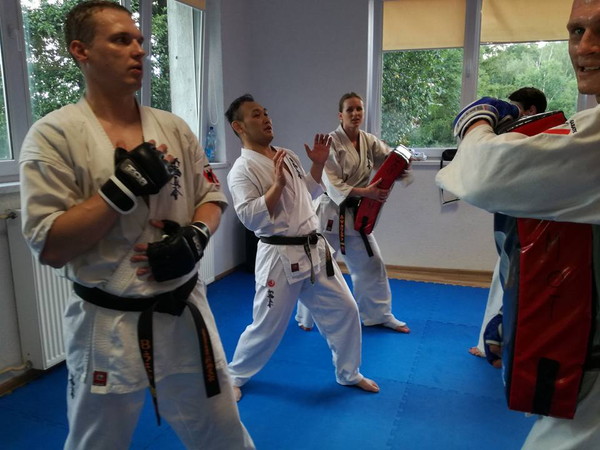 During August 12-19, Branch Chief Jacek Lamot organized a summer camp in Pokrzywna, with Branch Chief Naoki Kawahara of Japan as the special instructor. 3-4 trainings were held each day, and Shihan Kawahara taught the 38 participants kihon, ido-geiko, and many kumite combinations (kumite stance, balance, switch punches and kicks). The trainings focused mainly on kumite, and kumite combinations were done in pairs on pads. Evening classes were done in small groups (6-8 persons), and focused on punching, kicks, and stretching. There was a sightseeing tour of Wroclaw City and the Czech Republic. The trainings by Shihan Kawahara were very professional and interesting, and everyone was pleased with his instructing and personality.