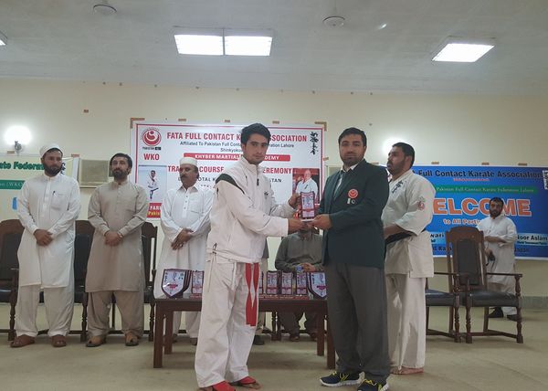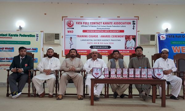 FATA Full Contact Karate Association arranged a Seminar & Award Ceremony at Landikotal Sub Division of Khyber Agency FATA Pakistan. At least 30 students and officials participated from many districts.The students attended the (Shinkyokushinkai) Training Sessions. The international fighters who represented Pakistan in International events were awarded and honored with special shields.