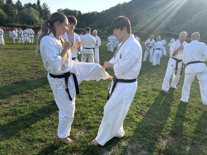 Every training, the Romanian students trained Kihon, Kata and mostly Kumite techniques from one of the finest competitors of Japan, Sensei Kato. With his smooth style, relaxed attitude and explosive power, Sensei Daiki took his time to explain his style and his favorite techniques. With kindness and attention, he walked among the students and gave advice on how to improve their technique and become better fighters.