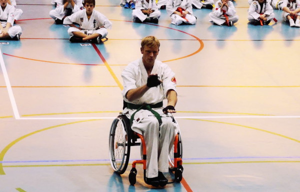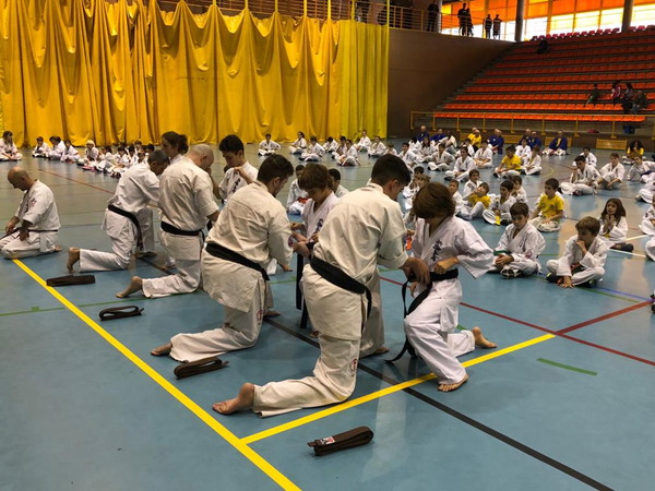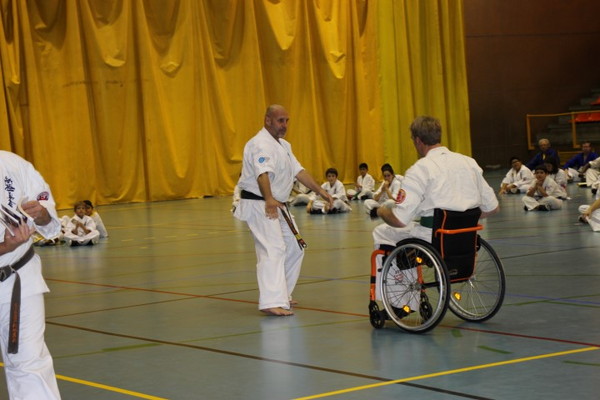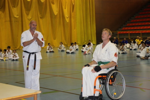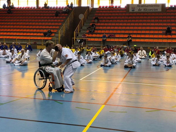 On November 11, we held the opening training ceremony for our 2018-2019 year at the Los Cantos Sport Hall in Madrid (Alcorcon). Shihan Koen Spitaels from WKO Belgium, and his student, Frank Van Geyt, a parakarate competitor, also visited the training attended by 300 students. Shihan Spitaels and his student gave a demonstration of techniques used in parakarate, and it was a great inspiration for all participants. We hope that this opening training ceremony will be a good start to a wonderful year.