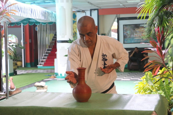 Breaking a clay decanter with his Shuto by Shihan Muthukumarana (similar to bottle cut)