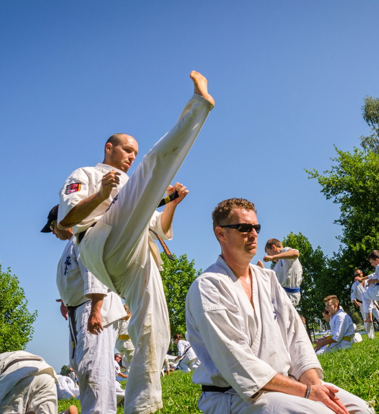« Tomodachi » means friendship and this is exactly what over 140 participants from Austria, Belgium, Canada, Croatia, Demark, Germany, and Switzerland celebrated on August 9-11. The Lake of Constance and the camp site in Hard offered the perfect facilities for out and indoor training. Before the camp officially started, those who had arrived one day earlier took the opportunity to climb the nearby mountain. At 1,092m they were rewarded with a splendid view over the lake and the Alps.