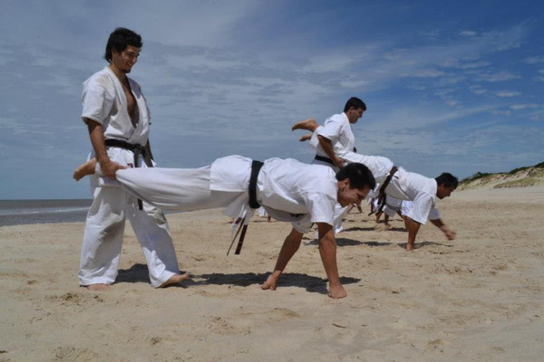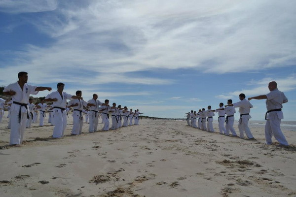 At 10:00 pm the first training started at the beach, by Eduardo Garcia Shihan, Jarry González Shihan, Adriano Hernandez Sensei and Daniel Rios Sensei, among other teachers who also were involved. This lasted until 13:00 pm and consisted of a whole kihon, ido gueiko techniques, various exercises of strength and endurance involving also the technical side, always taking advantage of the natural environment.