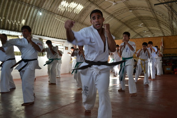 Finally at 18:00 pm the day concluded with a special competition training by Oscar Diaz Sensei (Coach of the selection), and Federico Diaz Senpai (South American champion), which was focused on different physical exercises and Kumite techniques to strengthen this area.