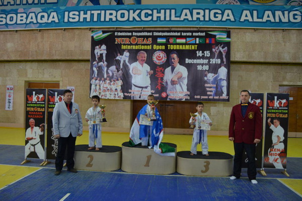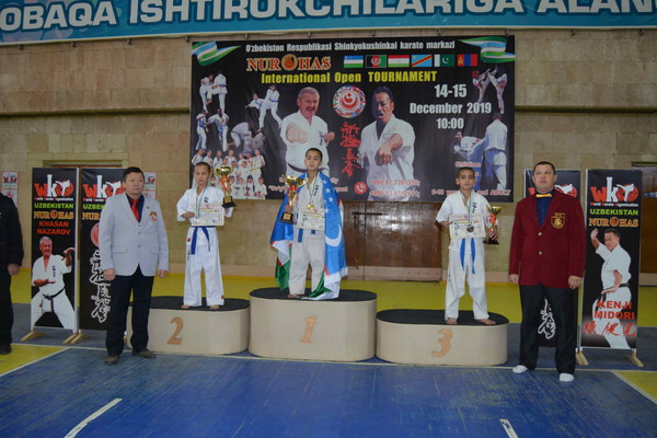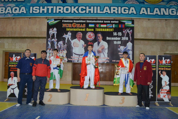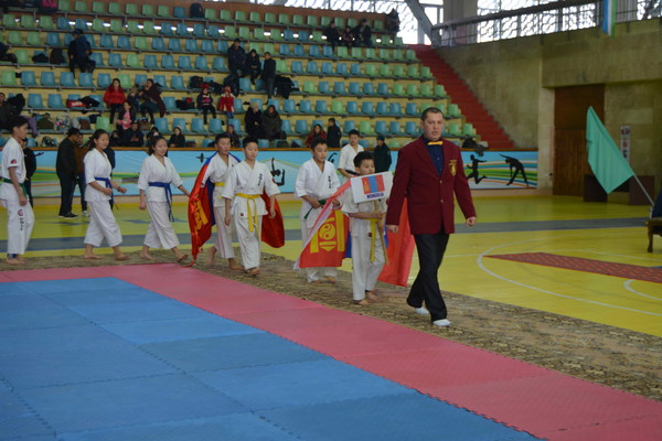 On December 14th, the 9th International Cup among Children and Juniors of the Center of Shinkyokushinkai Karate Republic of Uzbekistan “Nur-Has” was held. There were 120 competitors from different regions of Uzbekistan, Tajikistan, and Mongolia. It was the first time for the Mongol Team headed by Branch Chief Gombogerel Batmunkh (3rd Dan) to visit Uzbekistan. In this tournament there were 18 weight categories.