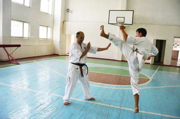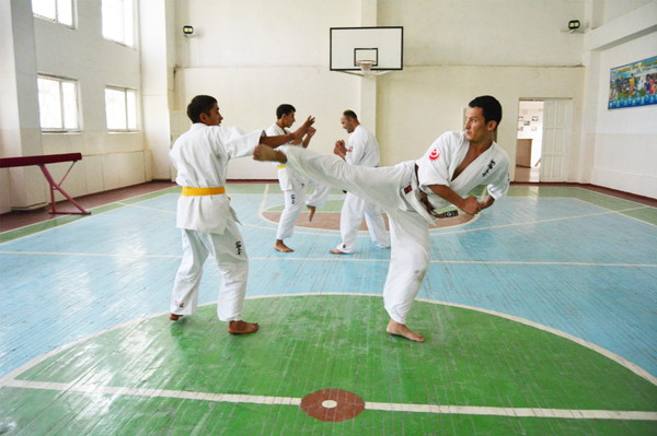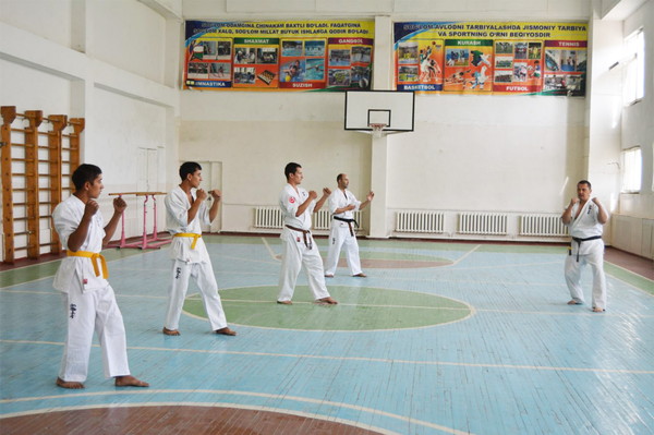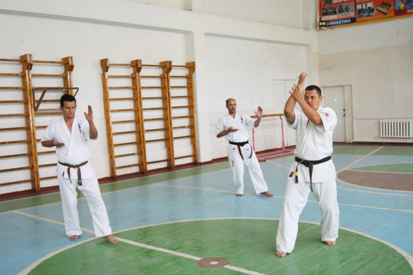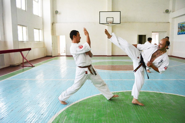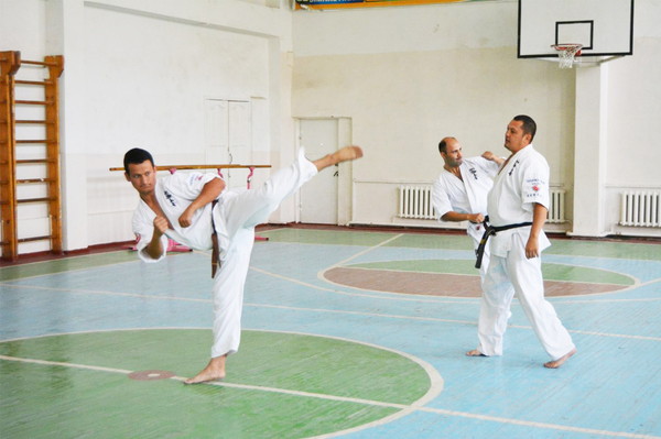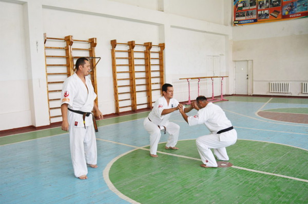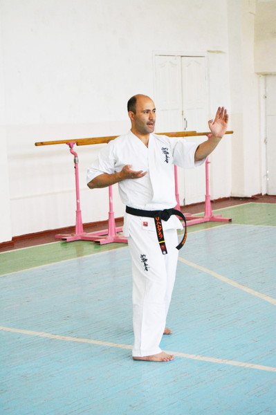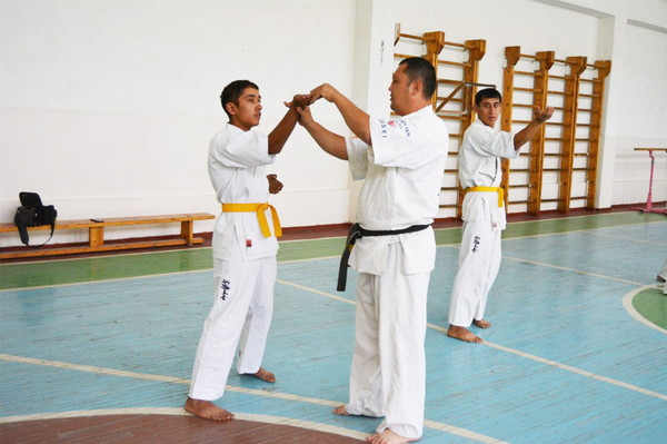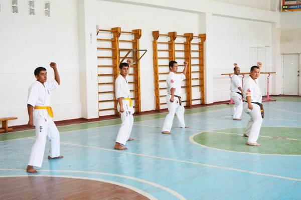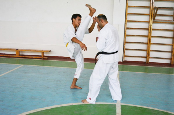 The session started by the well-studied lessons of Kihon,Ido,and Kata, then followed by 100 push-ups and 100 sit-ups, and finished by 10 consecutive fights.
