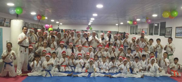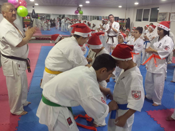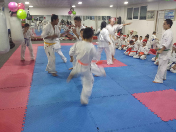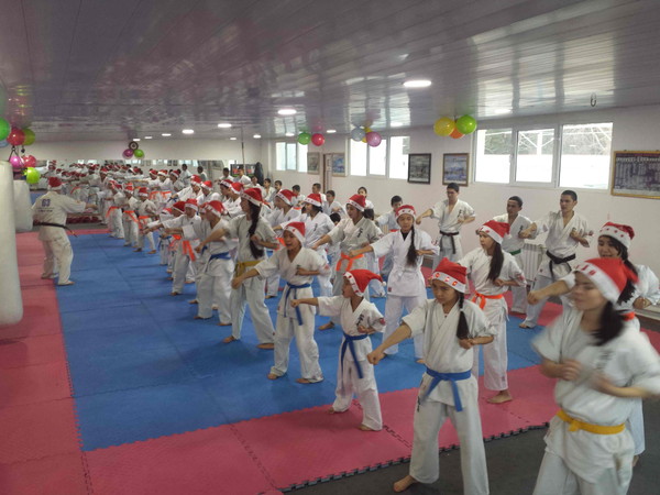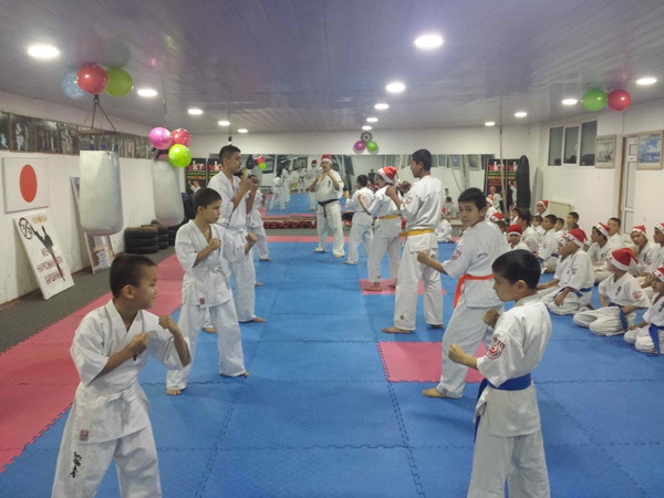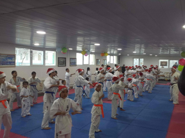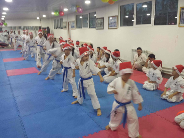 There were more than 40 karatekas who have put on a hat of Father Frost in this training.