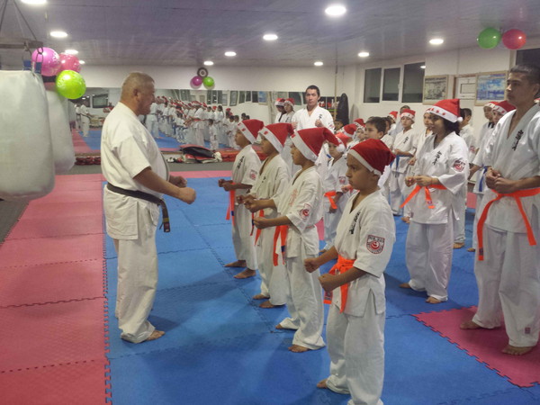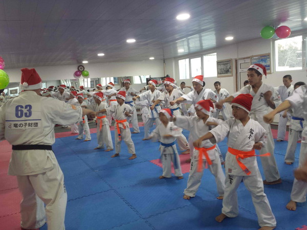 Since a New Year is 2018, the karatekas struck 2018 punches of seiken chudan zuki to see in the New Year. Then they passed examinations and became owners of new belts.