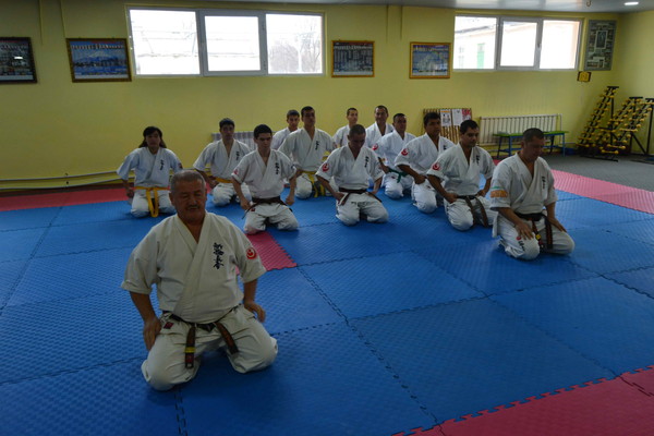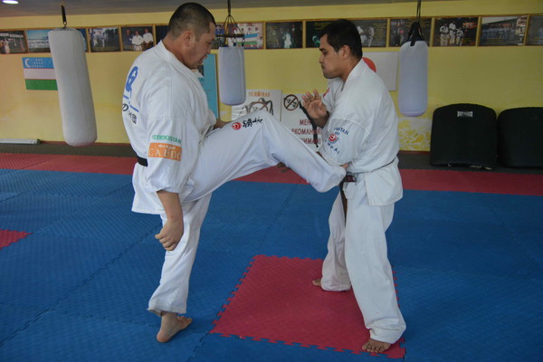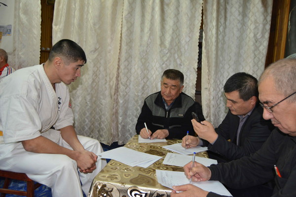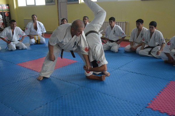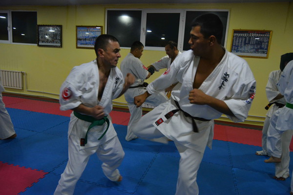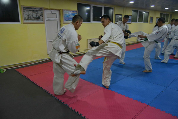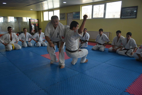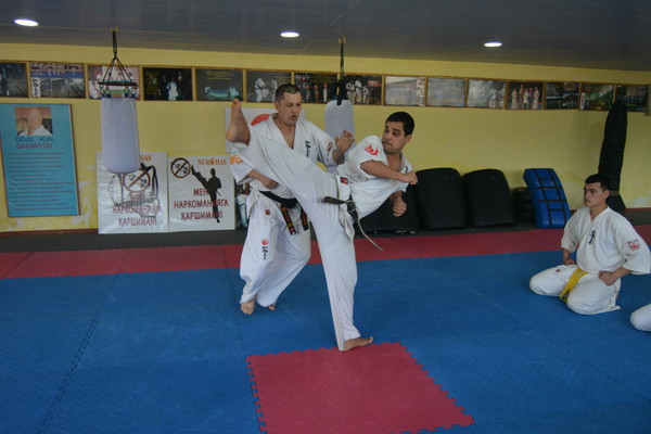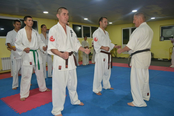 The participants were tested if they can demonstrate themselves as a good model to their students who are learning Karate in our center. The main trainer of kumite sparring and kata was Sensei Mutal Nazarov (4th Dan) who showed others right bearings, and exchanged of full contact techniques.