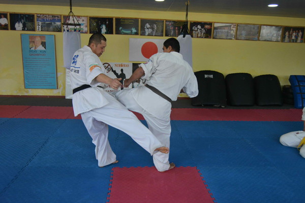 The trainers were examined in their fortitude, patience, and skills of kata and kumite.
