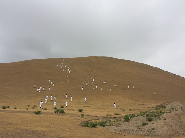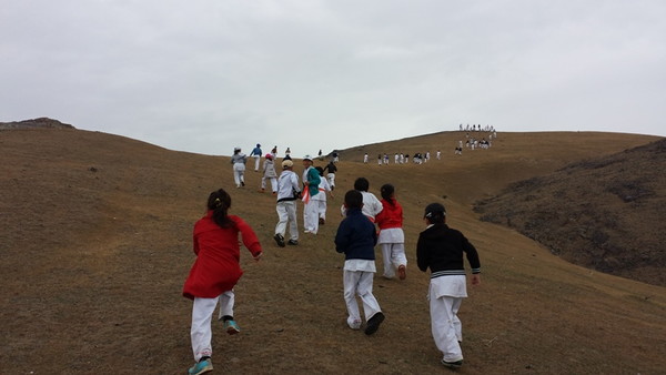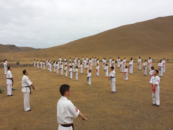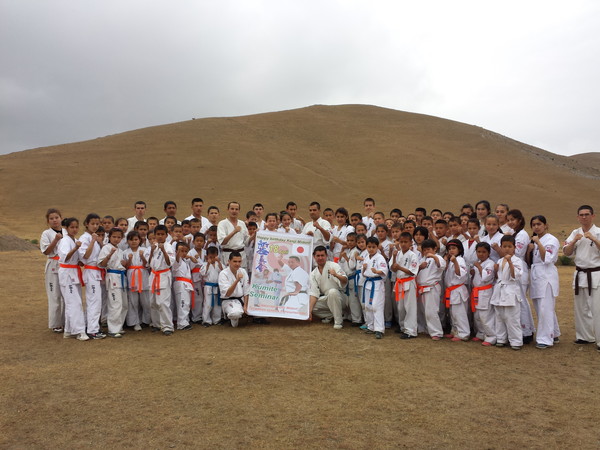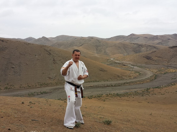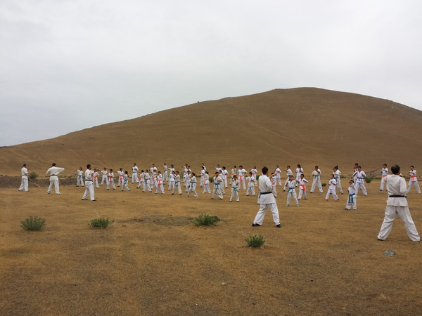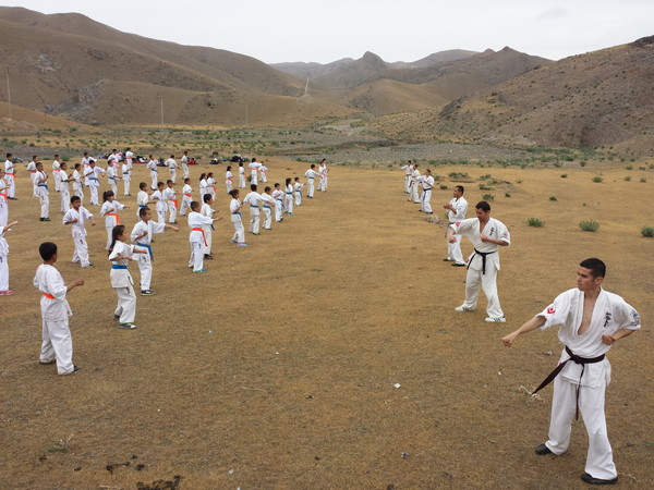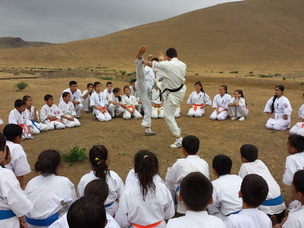 Fortunately, the rain stopped when they reached Ziyadin Mountains after going on foot 6 km and climbed to the top of the mountain (height 200 m). The Kumite seminar was held on the mountains in Samarkand region with eighty Karatekas from three Dojos. The trainer-instructors showed techniques of Kumite to the young boys and girls. The two hours training was held successfully and the Karatekas enjoyed training in the nature.